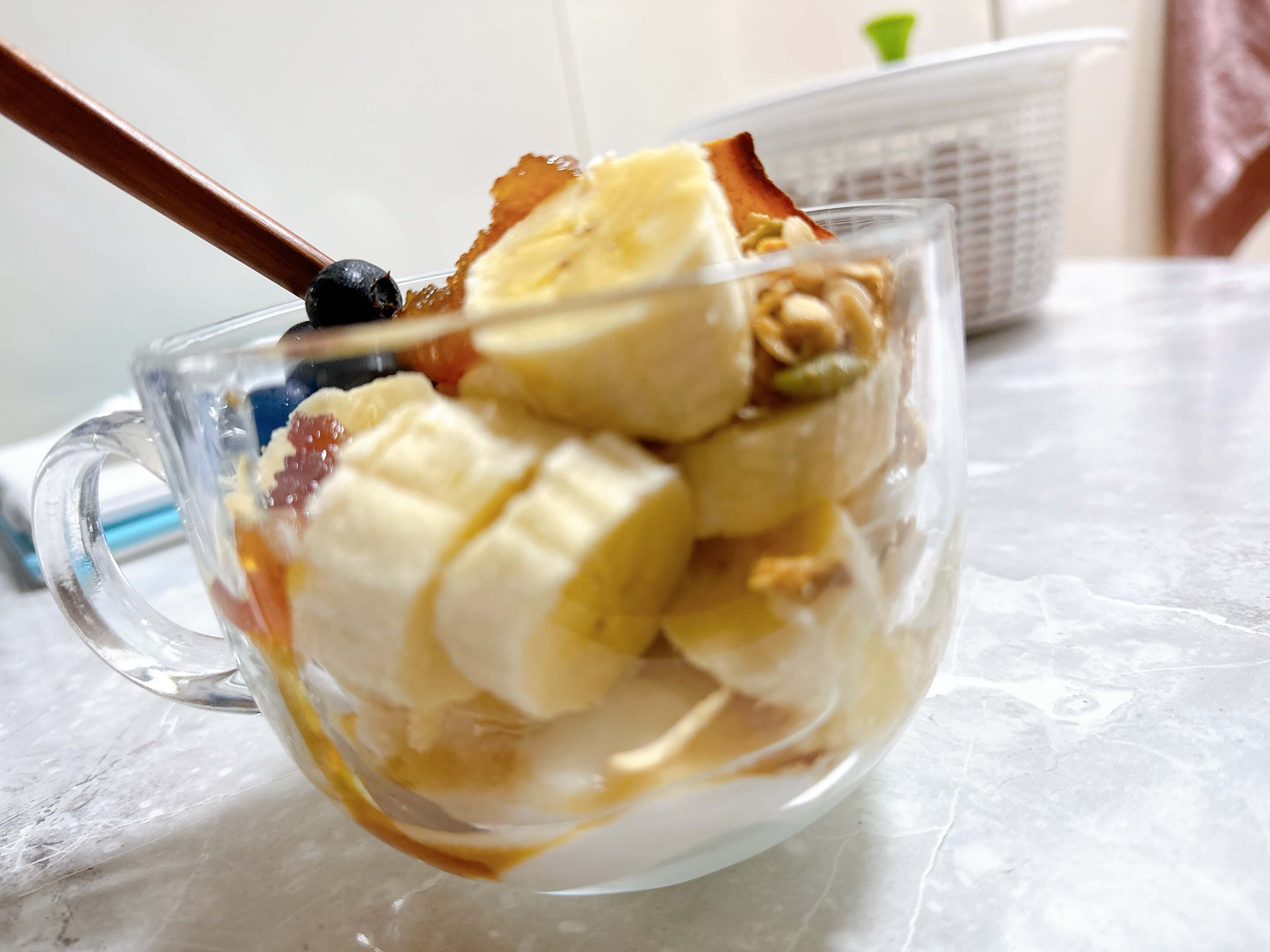 목요일 아침 : 그릭요거트 + 그래놀라 + 바나나 + 생블루베리 + 밤꿀